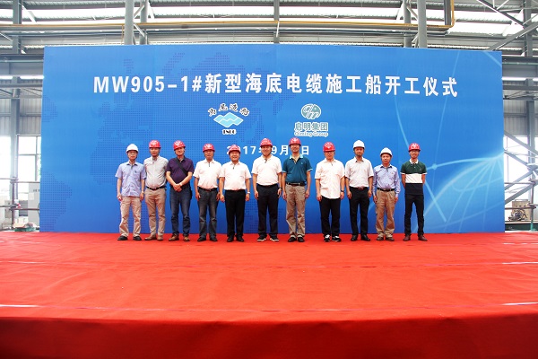 启明集团从事海底电缆工程建设已有三十余年,是国家电网公司系统内唯一一家专业从事海底电缆敷设、检修、维护的企业,也是国内创建海洋输电品牌的一支重要力量。马尾造船公司是一家具有150多年造船历史的国有企业,具有丰富的各类船舶建造经验,蜚声海内外。本次是双方的首度合作,标志着我国5000吨级首制海底电缆施工船的诞生,它将为我国海上风电产业增添一道亮丽的色彩。