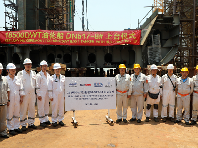 奋力冲刺“双过半”丨东南造船18500DWT油化船(DN517-8)顺利上船台