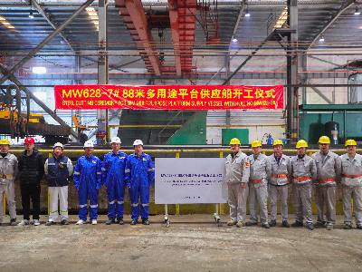 东南造船88米多用途平台供应船(MW628-7)顺利开工 两日完成四大生产节点