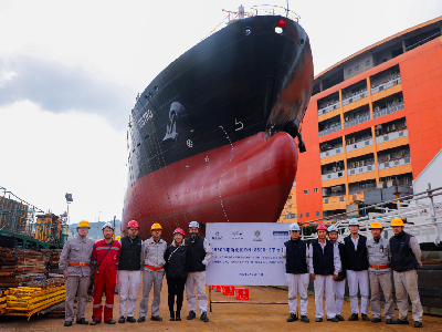 东南造船18500DWT油化船(DN18500-3)顺利下水